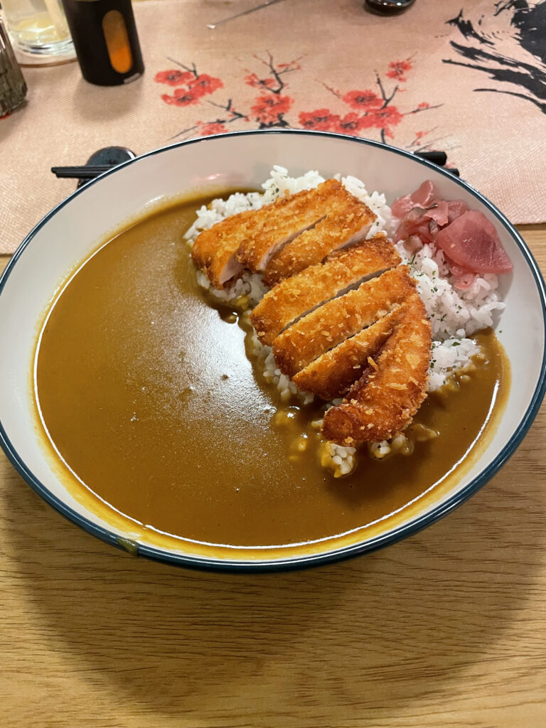 Un petit restaurant qui ne paye pas de mine vu de l’extérieur, à quelques rues de la tête rotative de Kafka. Nous l’avions repéré avec sa note de 4,9 sur Google maps. Le curry japonais nous faisait déjà salivé rien que sur les photos. Nous n’avons pas été déçus du voyage ! L’ambiance est chaleureuse. Yori, le gérant est native du Japon, tout comme le chef en cuisine. Paul, qui les accompagne est britannique et à cuisiné au Japon. C’était un plaisir d’échanger avec eux et d’écouter les anecdotes de Yori. L’entrée que nous avons pris à partager, du poulet teriyaki était délicieux. Je ne parle même pas du curry japonais qui était un véritable régal !! Nous avons payé 35€ pour 1 entrée, 2 plats et 2 boissons dont 13€50 le curry japonais.