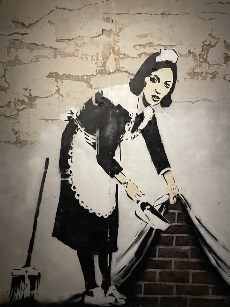 Mais si, c’est l’énigme la plus célèbre de l’art contemporain : un street-artiste britannique dont l’identité reste officiellement inconnue, malgré une renommée mondiale. Maître du pochoir et de la satire, il transforme les murs des villes en manifestes politiques, utilisant l’humour noir et l’ironie pour dénoncer le militarisme, le capitalisme et les injustices sociales. Il est également célèbre pour avoir orchestré l’autodestruction de son œuvre Girl with Balloon en pleine vente aux enchères chez Sotheby’s en 2018.