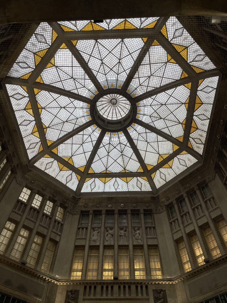 Ce bâtiment est magnifique avec sa mosaïque printanière ainsi que les détails avec les dorures et les motifs végétaux.