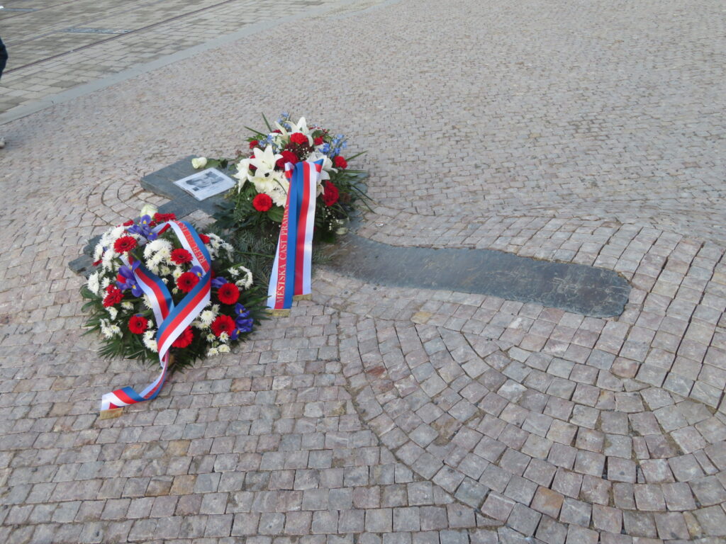 Un hommage est rendu Place Venceslas avec cette croix au sol qui est régulièrement fleurie.