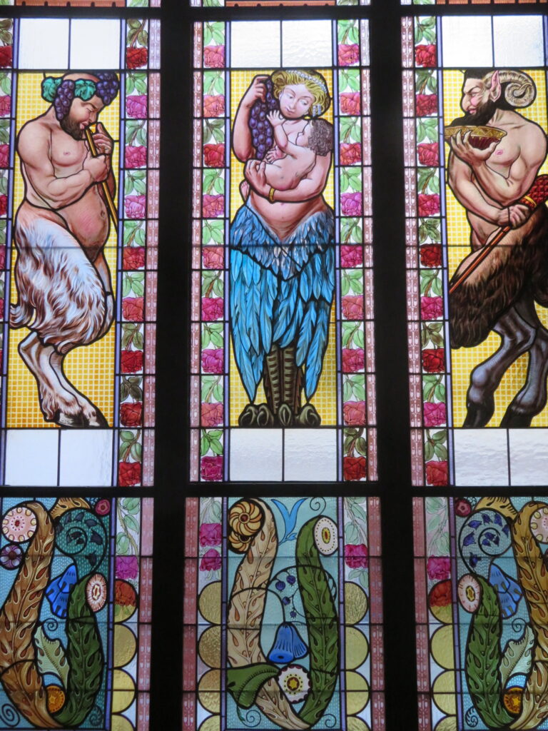 Il est possible de monter au premier étage en direction du Café Lucerna pour prendre de la hauteur pour observer l’oeuvre de Cerny et pour admirer certains vitraux.