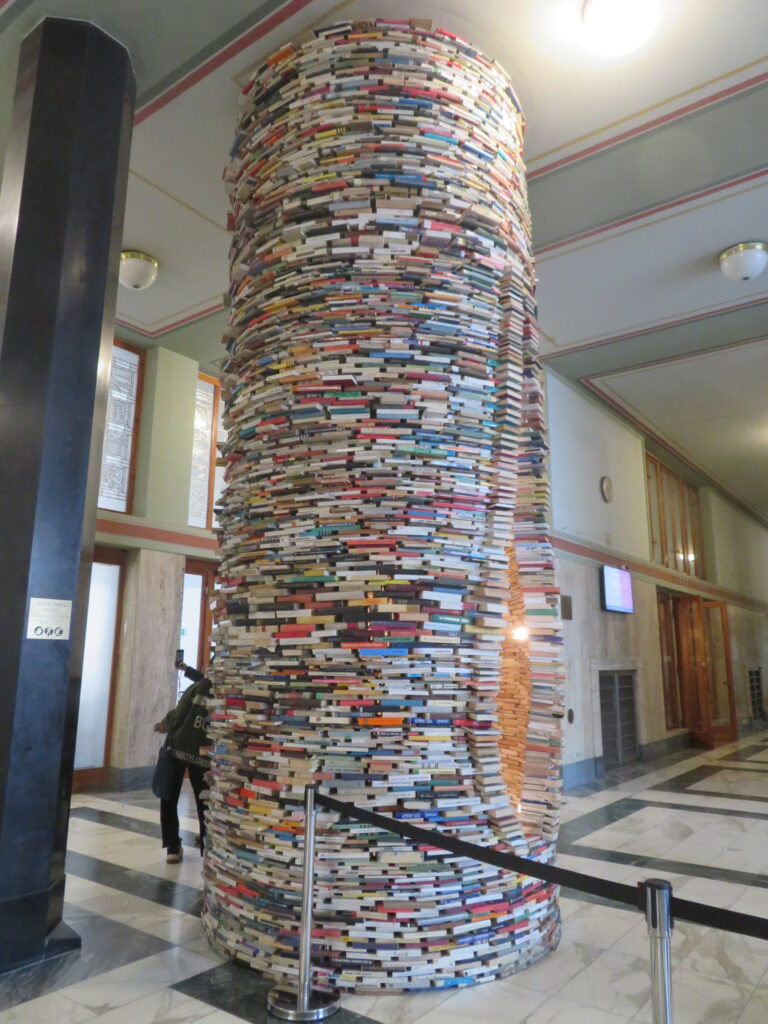 Entrez 5 minutes dans cette bibliothèque pour contempler une tour de livres insolite.