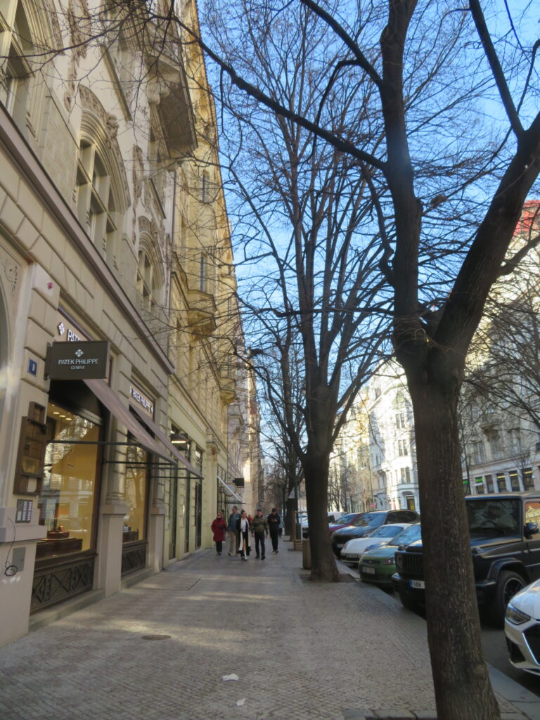 Nous avons ensuite rejoint la Vieille-Ville en passant par la rue Parizska (rue de Paris) avec ses enseignes de luxe et ses belles voitures. Il s’agit de la 19ème rue la plus chère au monde. Pour information, Prague est l’une des régions les plus riches d’Europe en termes de PIB par habitant (souvent dans le Top 3 de l’UE).