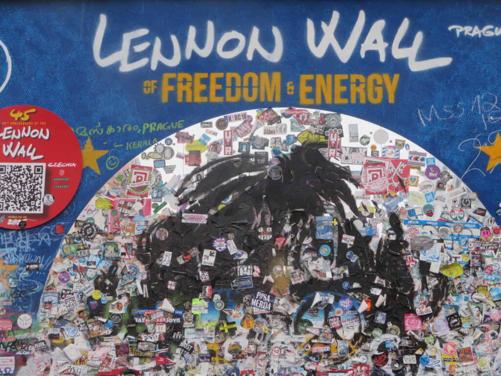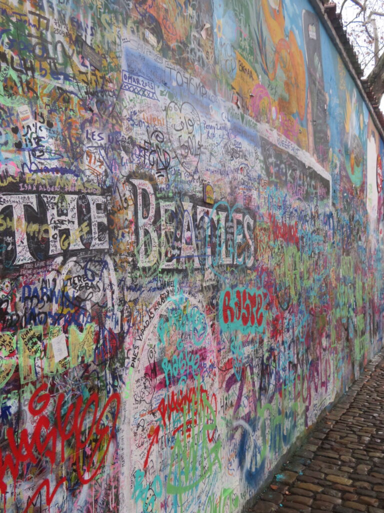 Une de nos petite déception de notre séjour. de base, seul le visage de John Lennon était peint sur ce mur. Aujourd’hui, on devine à peine son visage sous un monticule de stickers et de graffitis. Apparement, il est régulièrement repeint en blanc mais très vite recouvert de nouveaux graffitis.