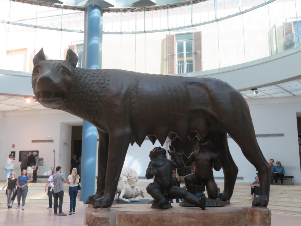 - La Louve Capitoline : La célèbre sculpture de bronze représentant la louve allaitant Romulus et Rémus, les fondateurs de Rome.