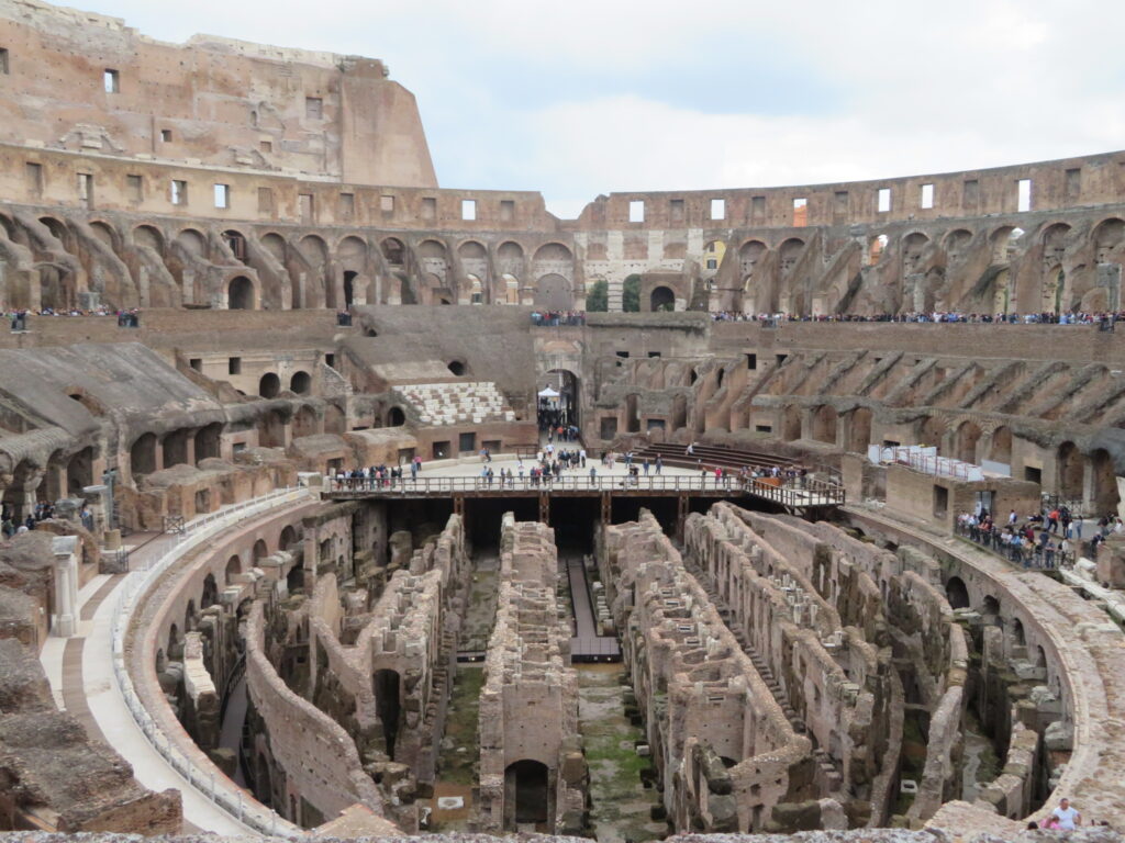 L’architecture du monument témoigne du génie romain, avec ses arcades superposées et son système complexe de couloirs et d’ascenseurs situés sous l’arène, où étaient retenus les prisonniers et les bêtes. Aujourd’hui classé au patrimoine mondial de l’UNESCO et désigné comme l’une des sept nouvelles merveilles du monde, il reste le symbole absolu de la puissance passée de la Ville Éternelle.