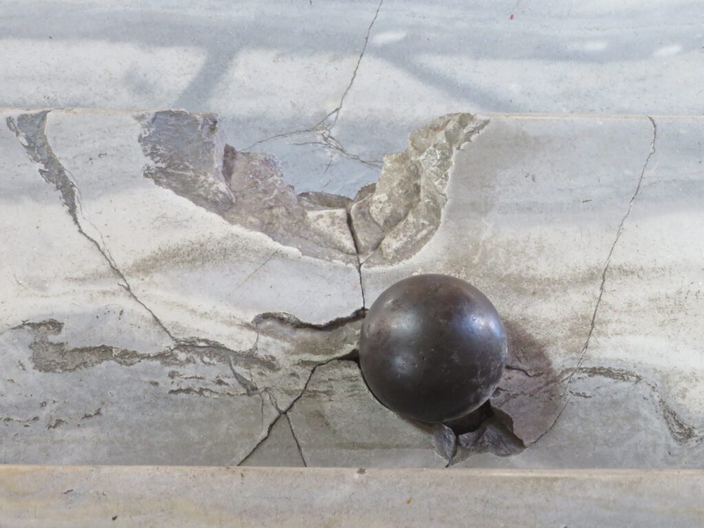 Le boulet de canon que l’on peut encore admirer aujourd’hui encastré dans les marches du Palais Colonna témoigne d’un épisode violent de l’unification italienne : le siège de Rome en 1849. Cette année-là, un projectile tiré par l’armée française depuis la colline du Janicule a traversé le toit et une fenêtre du palais pour finir sa course dans la grande galerie. La famille Colonna a choisi de ne pas réparer les dégâts et de laisser l’objet exactement là où il s’était logé.