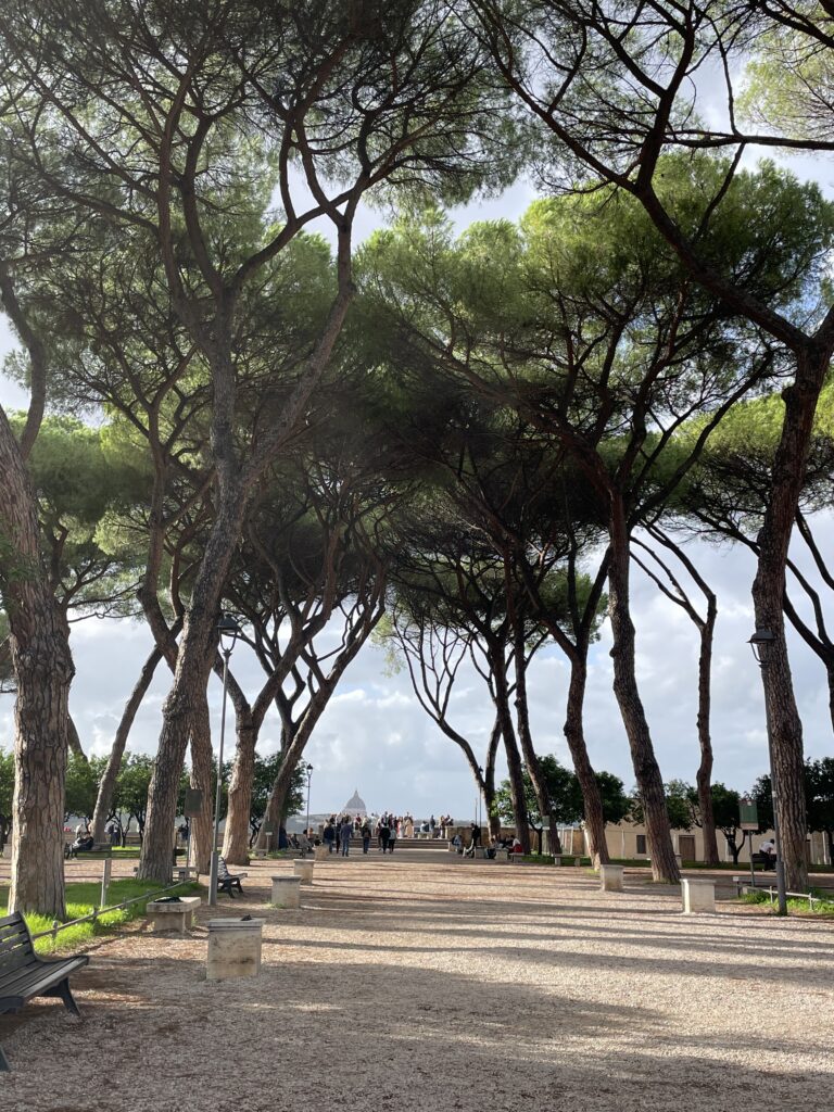 Conseil : À quelques pas de la sortie du jardin, ne manquez pas la célèbre « Piazza dei Cavalieri di Malta » où se trouve le Trou de serrure de l’Aventin : en y regardant, vous découvrirez une vue parfaitement cadrée sur la coupole de Saint-Pierre à travers une haie de jardins privés. Attention, il peut y avoir du monde pour y accéder.