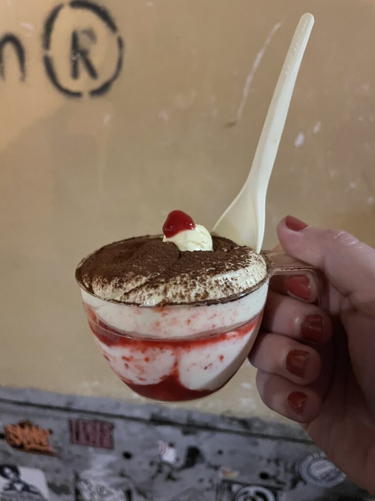 Si vous passez par le quartier de Navona à Rome, une halte chez Two Sizes est quasiment obligatoire pour tout amateur de douceurs. Ce petit comptoir à emporter a bâti sa réputation sur un concept simple mais redoutablement efficace : le meilleur tiramisu de la ville, décliné en deux tailles (d’où son nom) et en plusieurs parfums allant du classique au pistache, en passant par le caramel beurre salé ou le fruit de la passion. Malgré l’étroitesse du lieu et la file d’attente souvent présente, le service est rapide et le rapport qualité-prix reste imbattable pour une gourmandise aussi onctueuse et équilibrée. C’est l’adresse parfaite pour attraper un dessert artisanal et continuer sa balade romaine, une petite cuillère à la main.