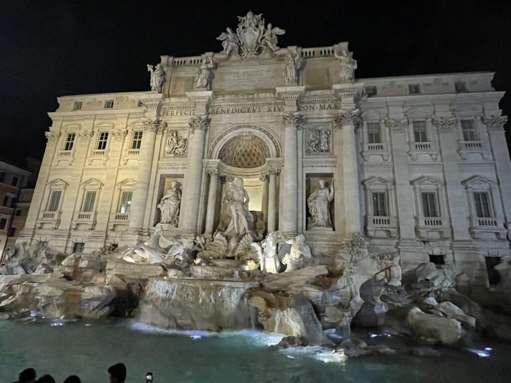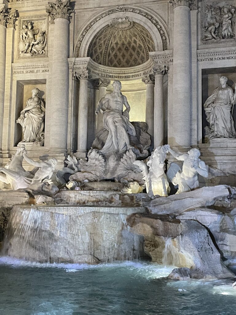 C’est sans aucun doute la fontaine la plus célèbre et la plus spectaculaire de Rome. Inaugurée en 1762, cette œuvre monumentale de style baroque et rococo a été conçue par l’architecte Nicola Salvi. Elle représente le dieu Océan sur un char en forme de coquille, tiré par des chevaux ailés et des tritons, symbolisant les différentes humeurs de la mer.