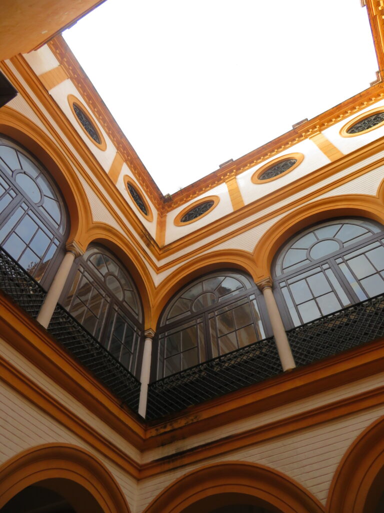 En retrait des rues principales du centre historique de Séville se trouve un trésor caché : la jolie place en demi-lune Del Cabildo. Si vous cherchez à échapper un instant à l’effervescence de la cathédrale, glissez-vous sous le passage discret qui y mène. Véritable joyau de l’architecture néo-baroque, cette place semi-circulaire surprend par son élégance et son calme presque sacré.